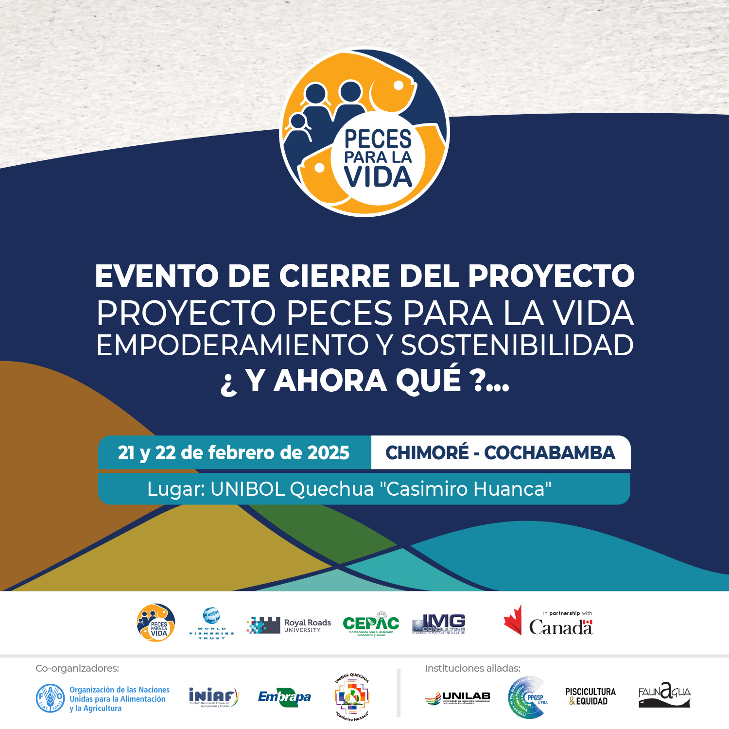The Closing Event of the “Peces para la Vida – Empowerment & Sustainability” project, held on February 21–22, 2025 at UNIBOL Casimiro Huanca in Chimoré, brought together over 150 participants—43% women—including producers, institutions, and experts from Bolivia and abroad, to reflect on more than two years of work advancing sustainable aquaculture with a strong focus on gender equity. Organized with partners such as FAO Bolivia, INIAF, UNIBOL, CEPAC, FAUNAGUA, and international universities, the event featured presentations, thematic working tables, and action planning sessions addressing topics from strengthening associations and integrating aquaculture into public policy, to promoting environmentally responsible practices and expanding women’s leadership. A vibrant Culinary Salon, led by Argentine chef Vicente Cuevas and supported by local businesses, showcased innovative fish-based dishes that celebrated Bolivia’s aquatic biodiversity and cultural identity. Far from marking an end, the event launched a new chapter with the creation of a management committee and the commitment to form a multi-stakeholder platform dedicated to ensuring the sector’s future as a driver of inclusion, food security, and environmental stewardship.